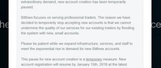 Криптовалютная биржа Bitfinex приостановила регистрацию новых пользователей. Сообщение об этом появляется при попытке открыть